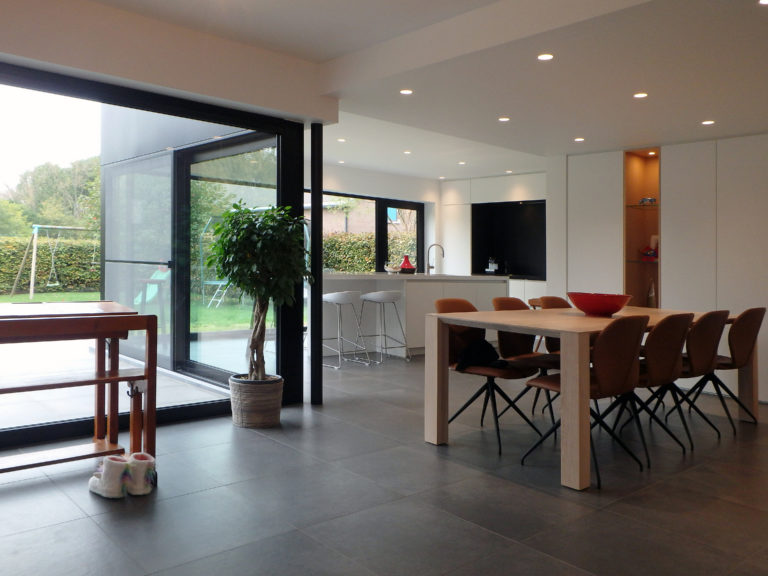 leefkeuken in beglaasde uitbouw