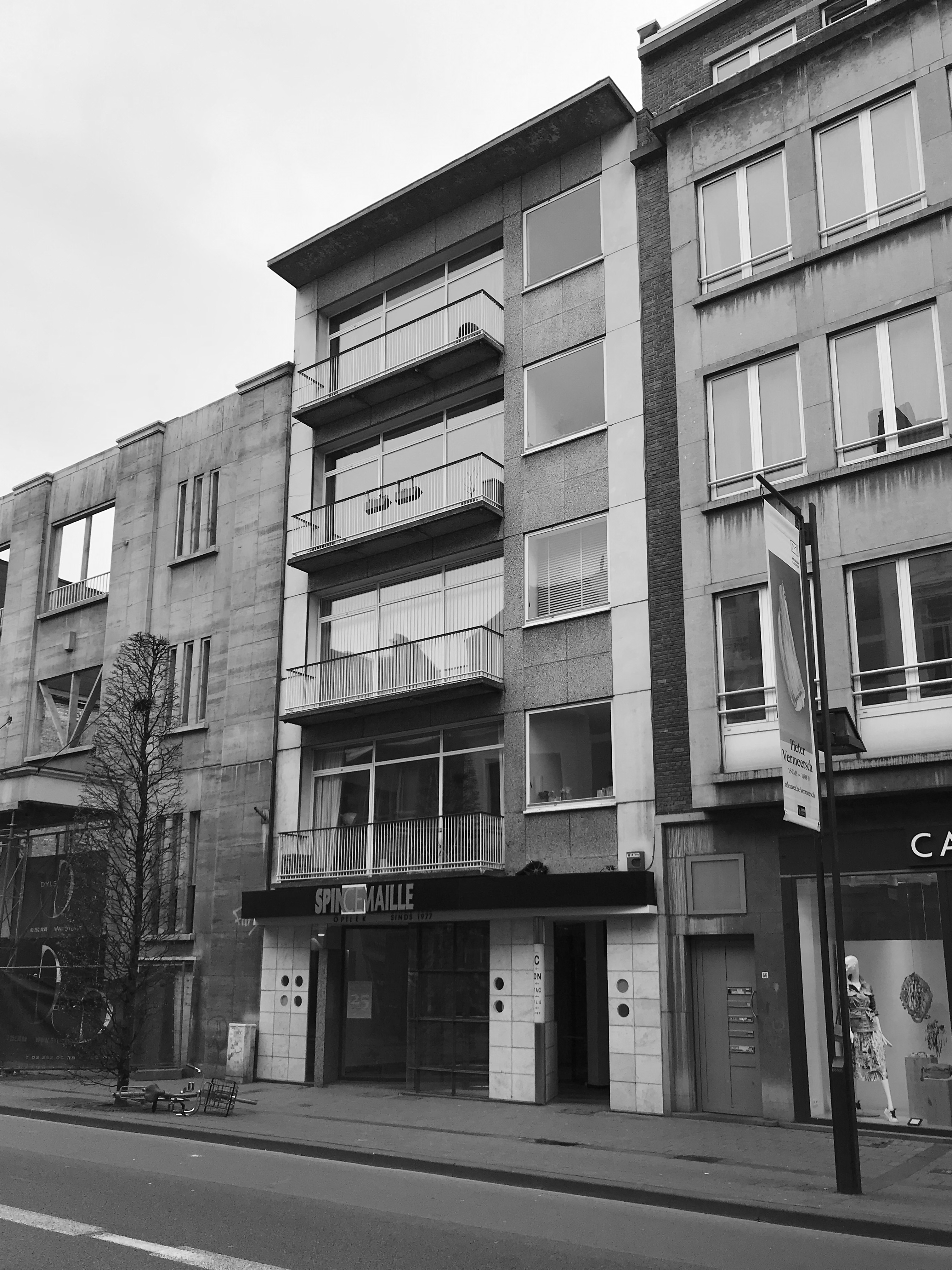 Uit de originele bouwplannen blijkt dat het pand dateert van eind jaren ’50. De bestaande gevel doet geen enkele moeite om zich in het straatbeeld te integreren.