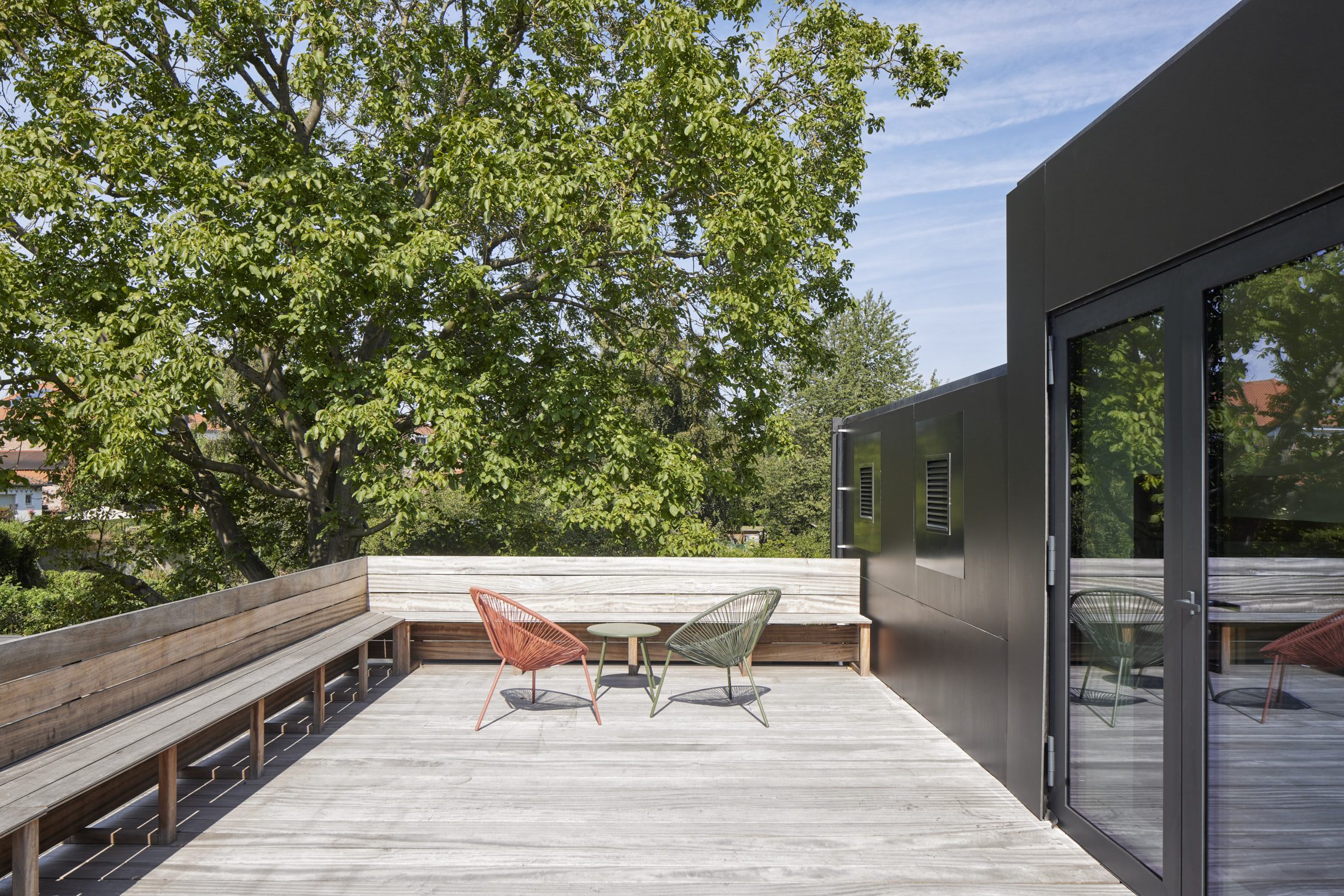 Het ontwerp voorziet een gelijkvloerse uitbreiding met behoud van de zwarte box. De sokkel wordt vergroot en transparant en helder vormgegeven met glas en glazuurtegels.