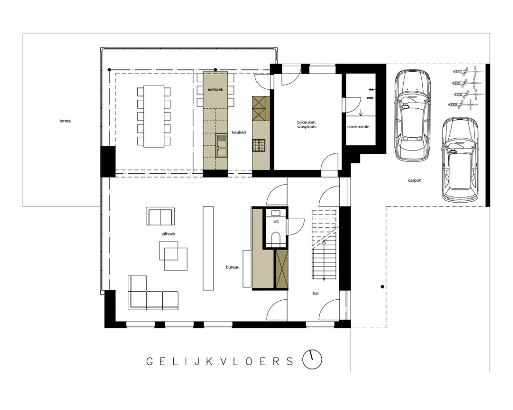 Ruimte scheppen door uit te breken. De klassieke woning was heel gesloten opgevat, met muren en bergingen aan de kant van het natuurgebied.