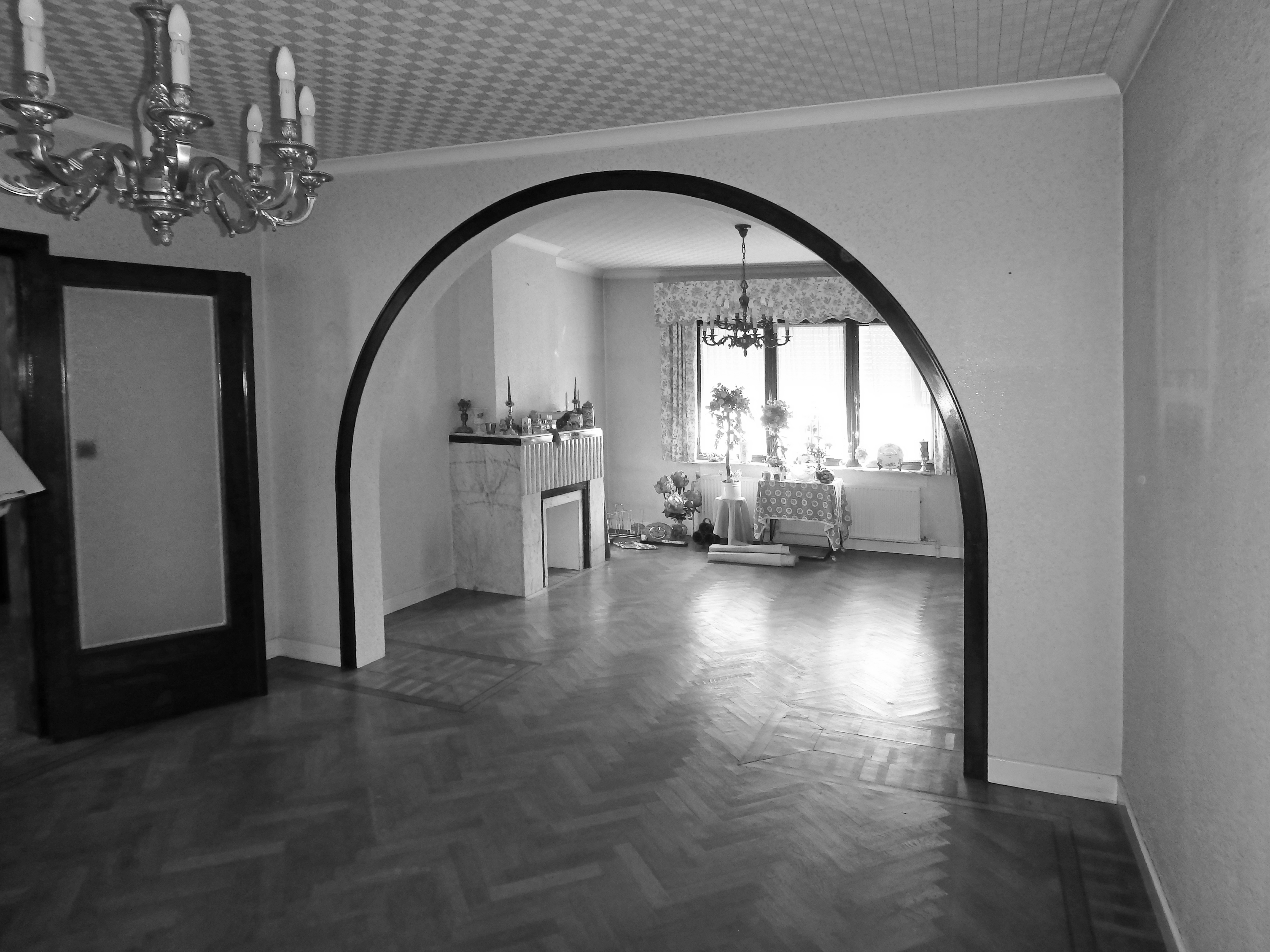 Charme had het wel, het rode huis van na de 2e wereldoorlog: de rondboog in het salon, het binnenraam onder de trap, de parketvloer met de mooie details. Maar de indeling was traditioneel, met de keuken zo ver mogelijk van de leefruimte, de toegang naar de tuin niet evident en het ruimtegevoel ontbrak.