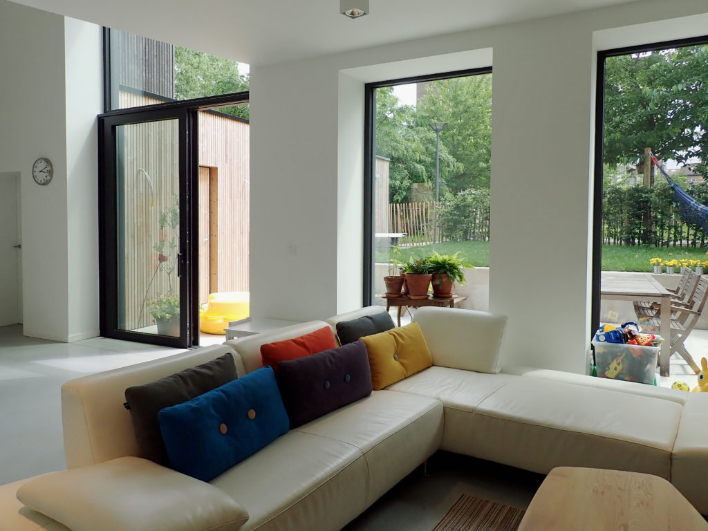 Wonen in een hedendaagse stadswoning met licht, zicht en vooral véél ruimte was niet aan de orde in de oude woning. Ingrijpend verbouwen was de enige optie. Het opzoeken van de relatie met de hoger gelegen tuin, maar ook met de rustige straat en de buurt, vormde een bijkomend uitgangspunt in het ontwerp.