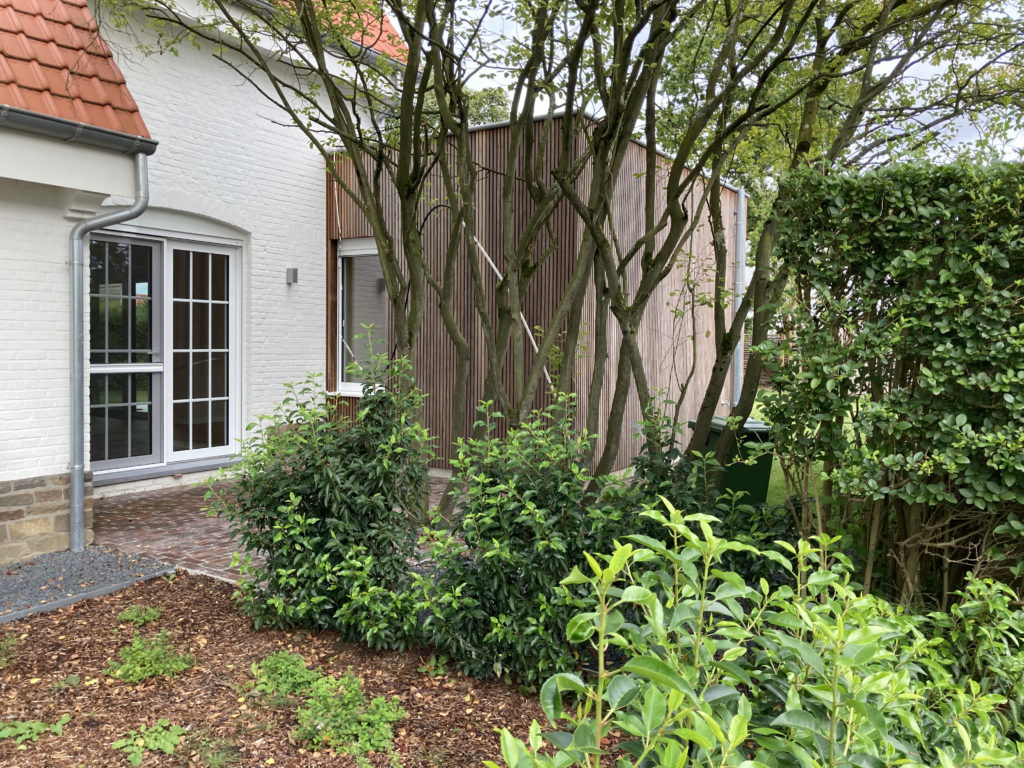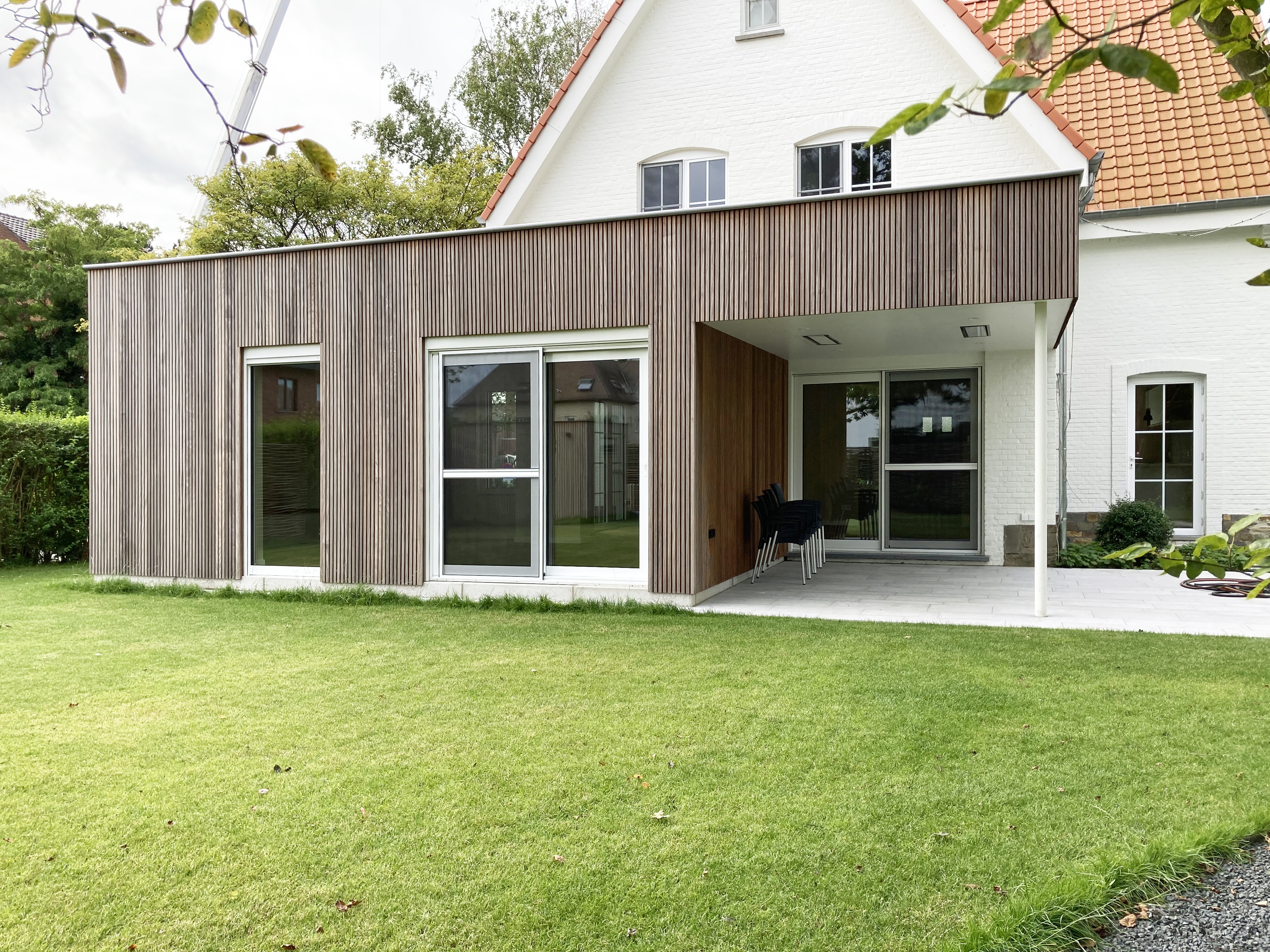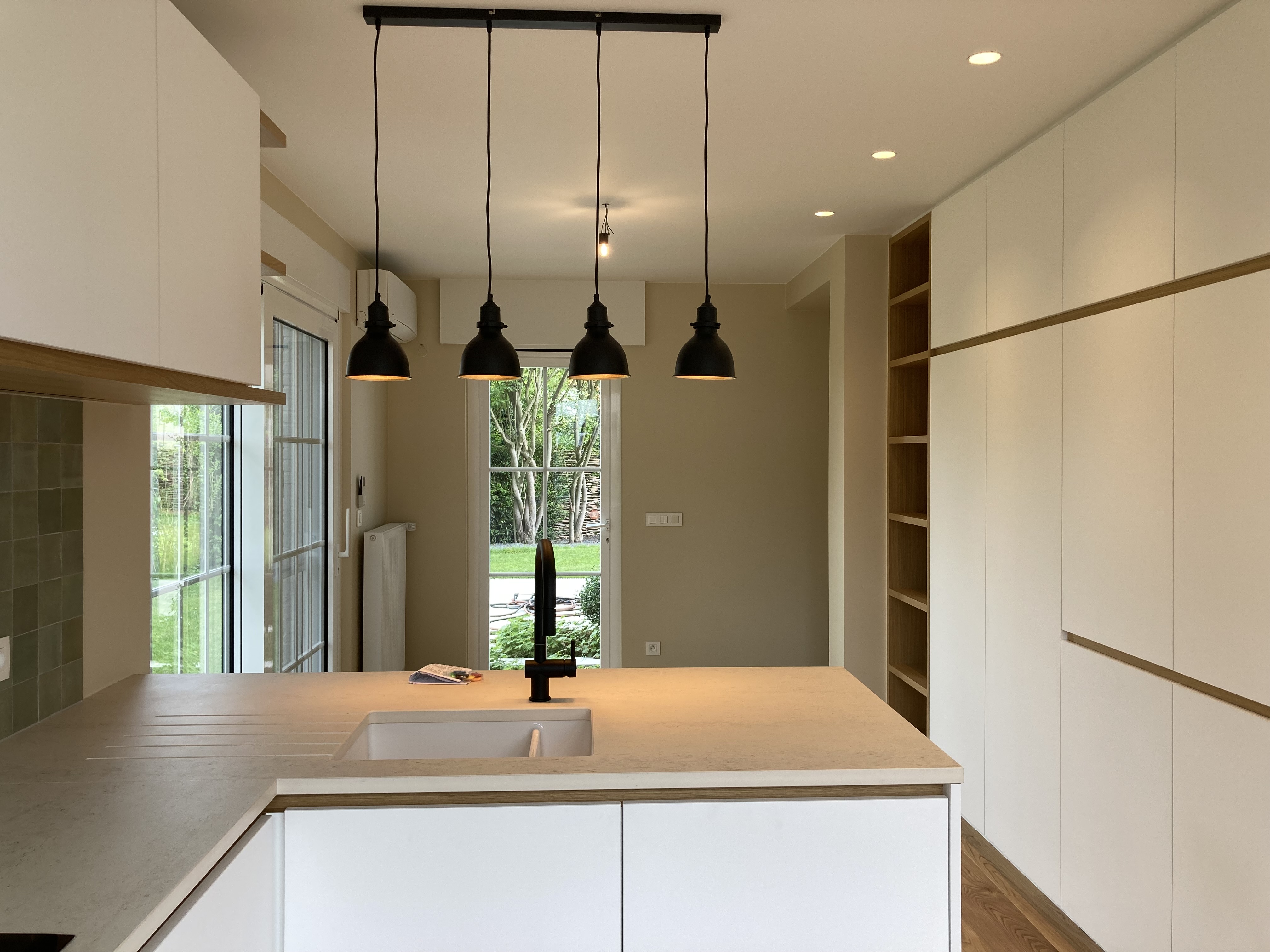 Erfgoedwoning in een groene buurt net buiten Leuven. Volledige renovatie met uitbreiding.