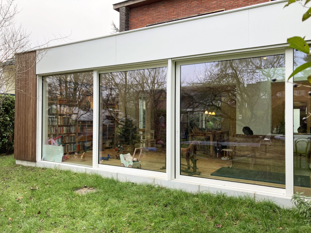 Voor de tweede keer klopte de bouwheer aan voor een uitbreiding van de woning. Tien jaar eerder plaatsten we een nieuwe dakverdieping met vier slaapkamers op de woning. Nu was het tijd om de leefruimte open te gooien, groter te maken en het licht en het groen van de tuin naar binnen te halen.